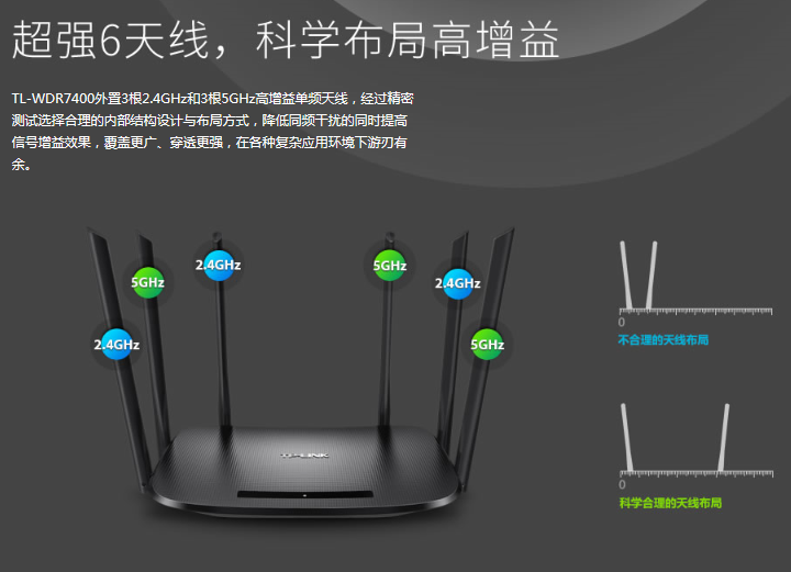 TL-WDR7400在高技術(shù)規(guī)格無線主芯片基礎(chǔ)上,采用外置獨(dú)立PA、LNA射頻芯片,在進(jìn)一步提高了無線發(fā)射性能的同時(shí),降低無線信號(hào)接收噪音干擾,使無線信號(hào)收發(fā)性能更優(yōu)異。