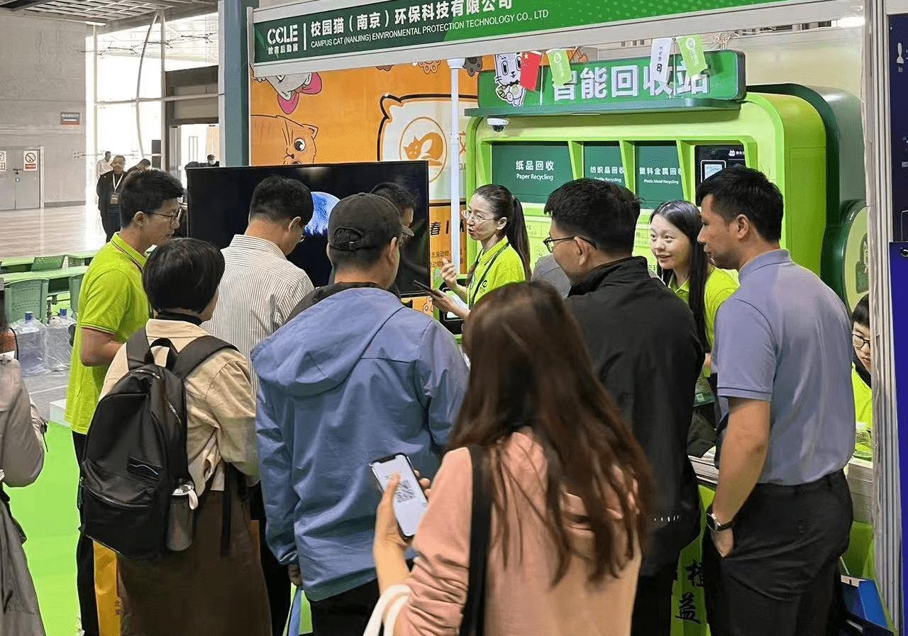2023年,4月12日—4月14日,中國教育后勤展,在江蘇南京盛大舉行。在展會現(xiàn)場,校園貓?zhí)岢龅摹肮步ňG色校園,以環(huán)保的方式生活”的品牌理念,深受與會嘉賓的認可?,F(xiàn)場展示的貓先生智能回收設(shè)備H180和Hone,也讓不大