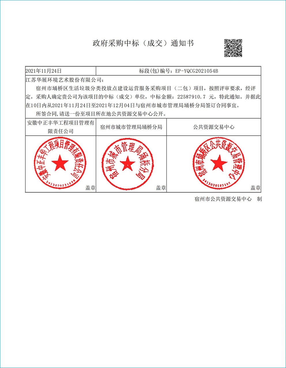 【中標(biāo)通知】安徽省宿州市埇橋區(qū)生活垃圾分類投放點(diǎn)建設(shè)運(yùn)營服務(wù)采購項(xiàng)目