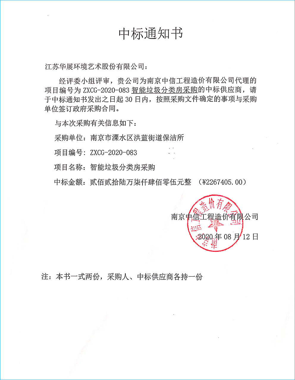 【中標(biāo)通知】江蘇省南京江北新區(qū)大廠、頂山、泰山、沿江及葛塘、長蘆、盤城街道小區(qū)生活垃圾循環(huán)利用建設(shè)工程-試點(diǎn)采購垃圾亭、垃圾房及服務(wù)安裝項(xiàng)目
